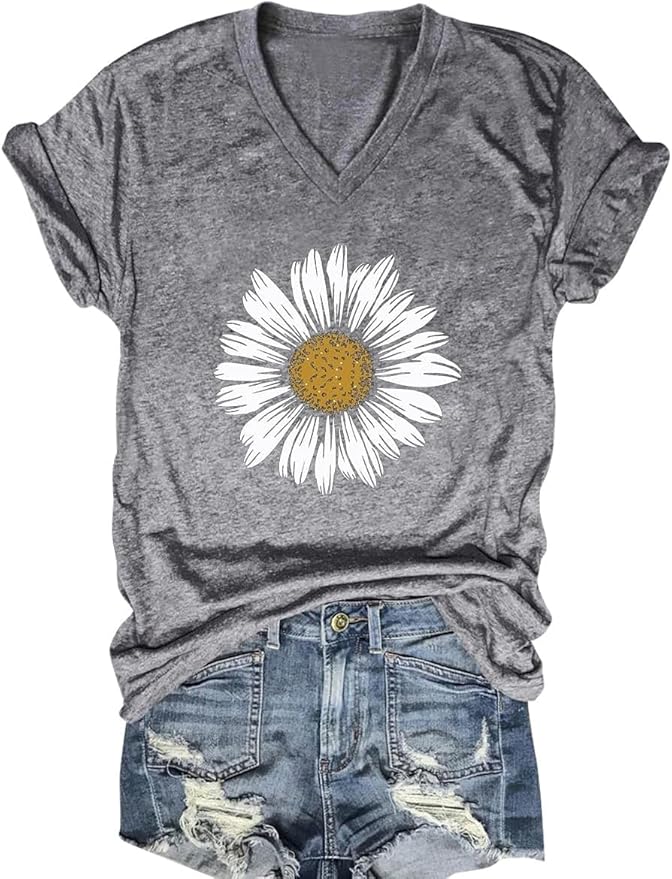 Trendy boho daisy print shirt.